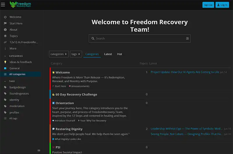 FreedomRecovery.Team isn’t just a website—it’s a living, breathing community built on the powerful open-source platform Discourse, where testimony meets technology and freedom takes root through conversation.